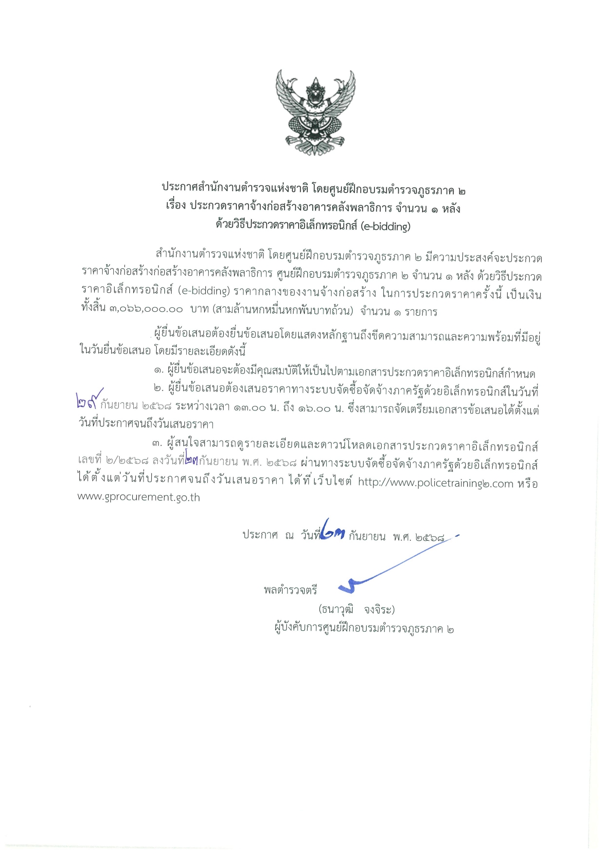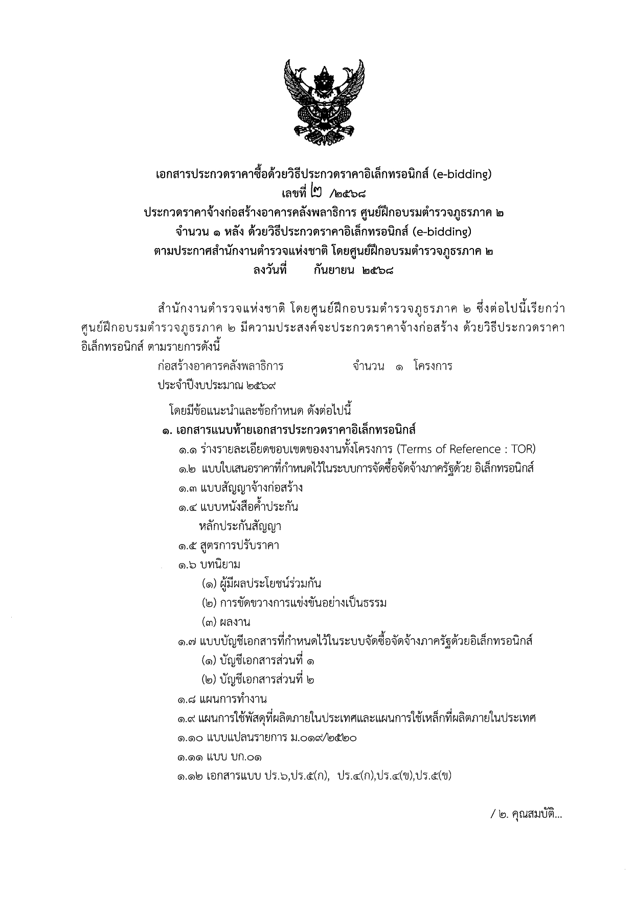 ประกวดราคาจ้างก่อสร้างอาคารคลังพลาธิการ จำนวน 1 หลัง ด้วยวิธีประกวดราคาอิเล็กทรอนิกส์ (E-Bidding)