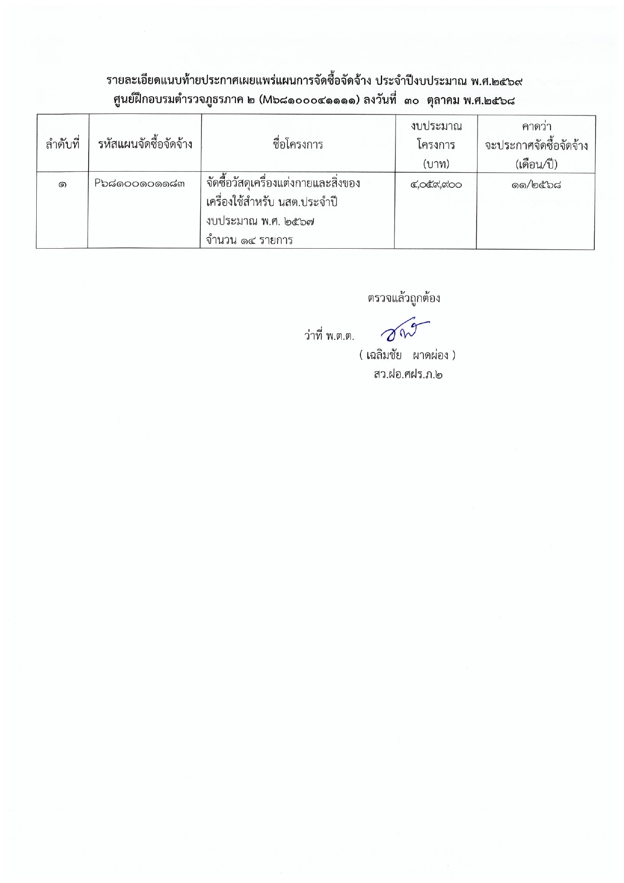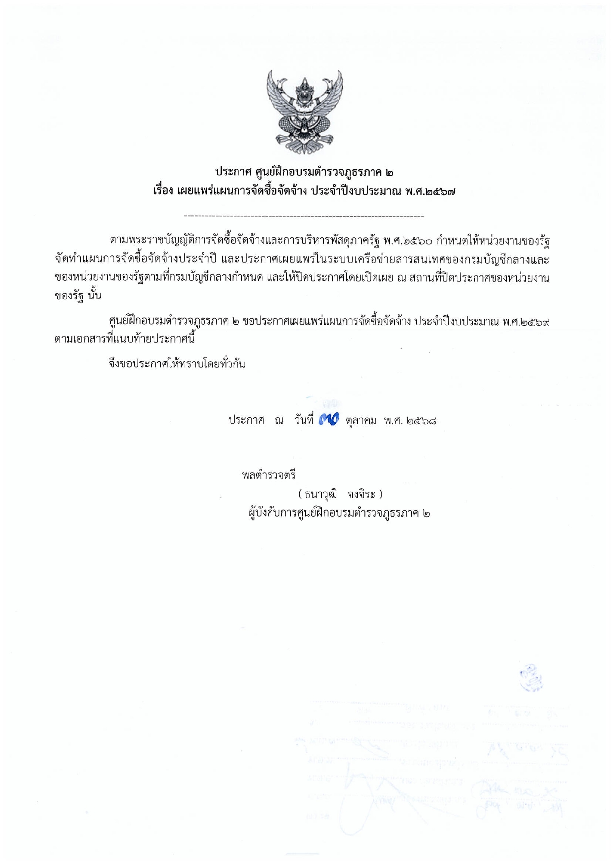 เผยแพร่แผนการจัดซื้อจัดจ้างประจำปีงบประมาณ พ.ศ.2567