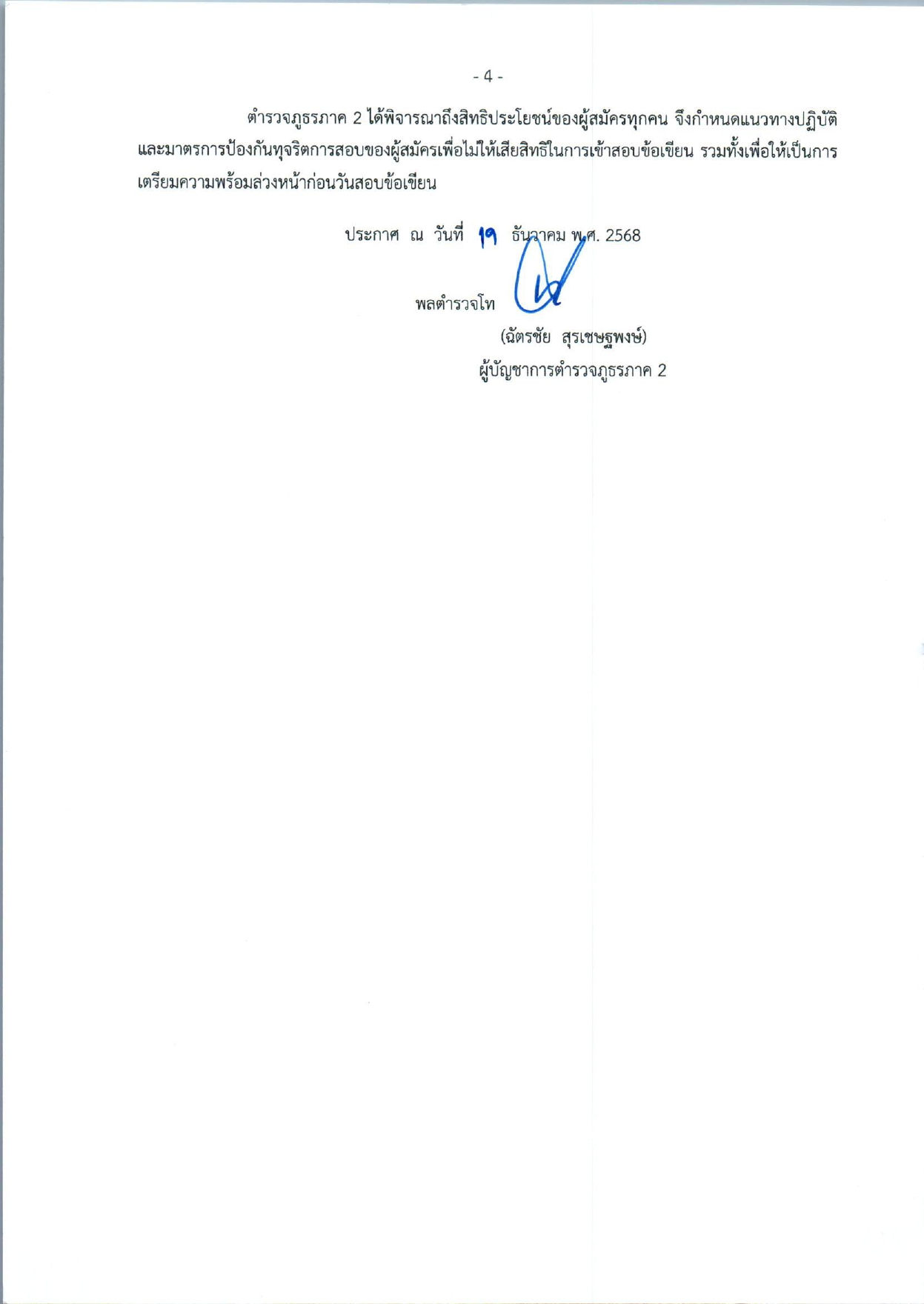 ประกาศรายชื่อผู้สมัครให้เข้าสอบข้อเขียน วัน เวลา และสถานที่สอบข้อเขียน ในการรับสมัครบุคคลผู้มีวุฒิประกาศนียบัตรมัธยมศึกษาตอนปลาย หรือประกาศนียบัตรวิชาชีพหรือเทียบเท่า เพื่อบรรจุเป็นนักเรียนนายสิบตำรวจ พ.ศ.2568 โดยวิธีการคัดเลือก