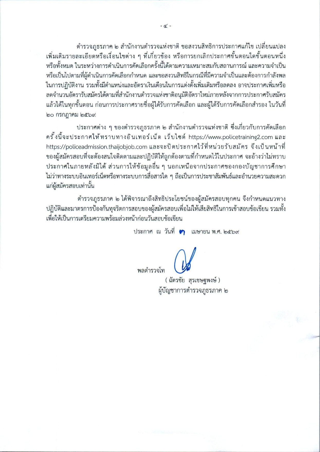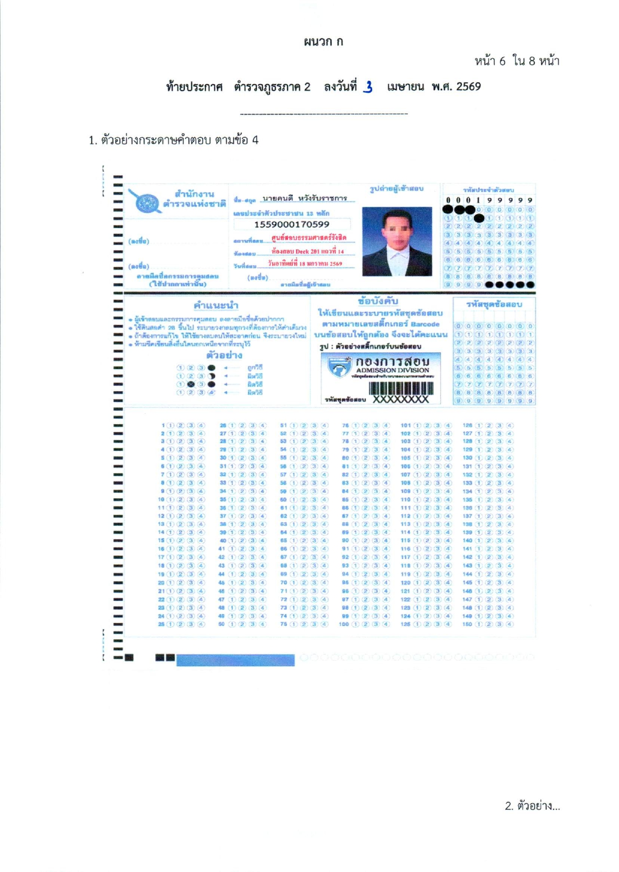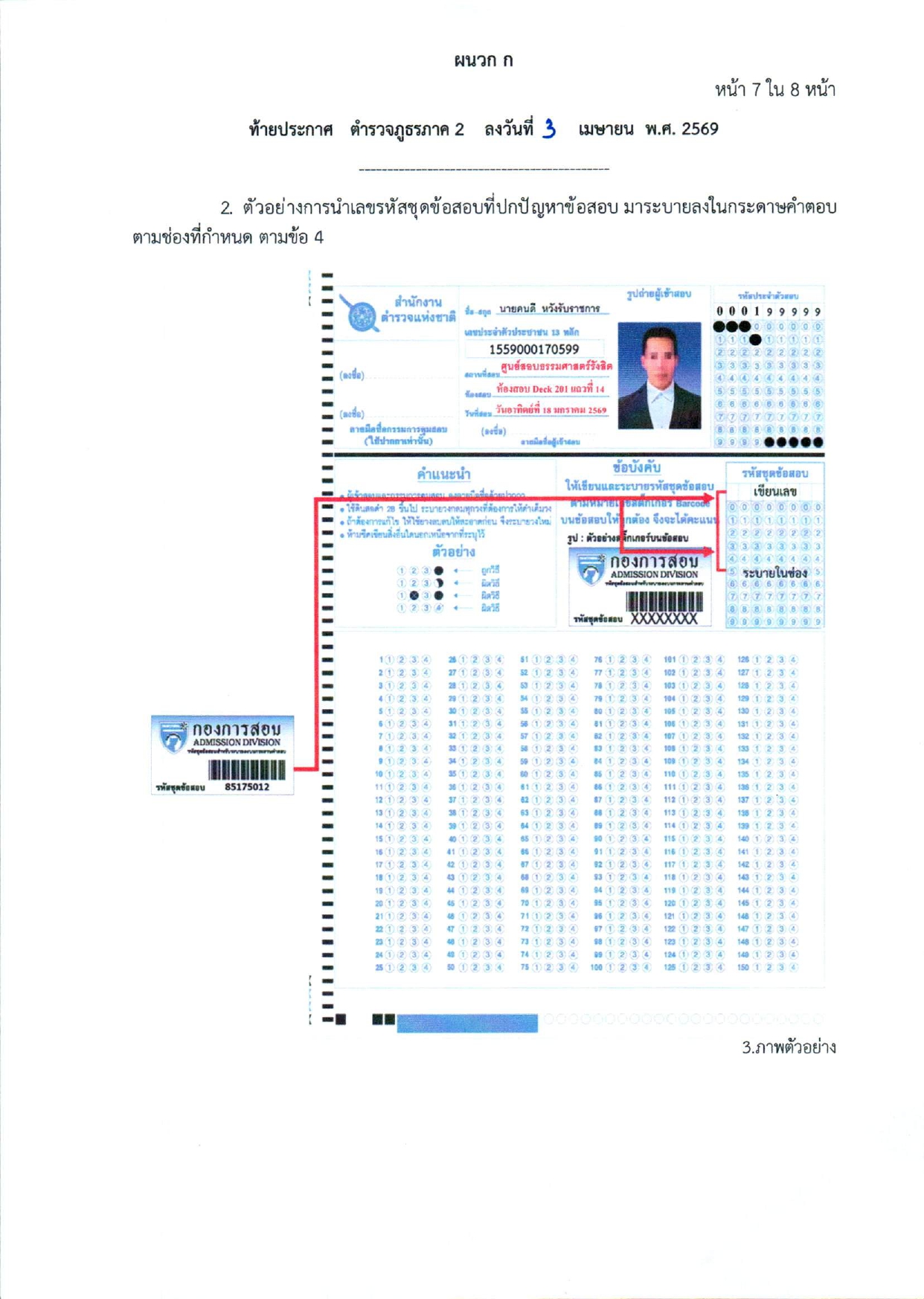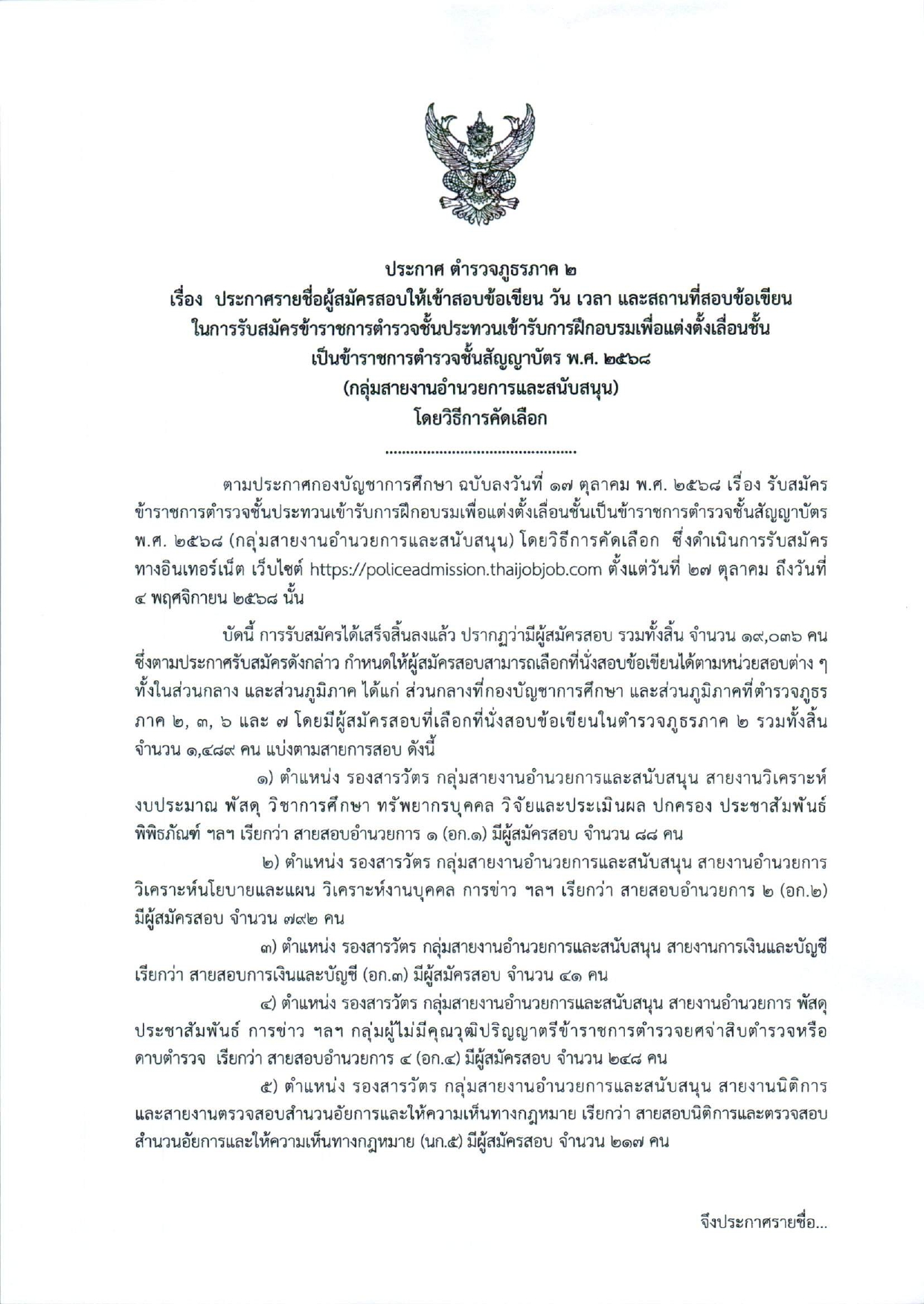 ประกาศรายชื่อผู้สมัครสอบให้เข้าสอบข้อเขียน วัน เวลา และสถานที่สอบข้อเขียน ในการรับสมัครข้าราชการตำรวจชั้นประทวนเข้ารับการฝึกอบรมเพื่อแต่งตั้งเลื่อนชั้นเป็นข้าราชการตำรวจชั้นสัญญาบัตร พ.ศ.2568 (กลุ่มสายงานอำนวยการและสนับสนุน) โดยวิธีการคัดเลือก