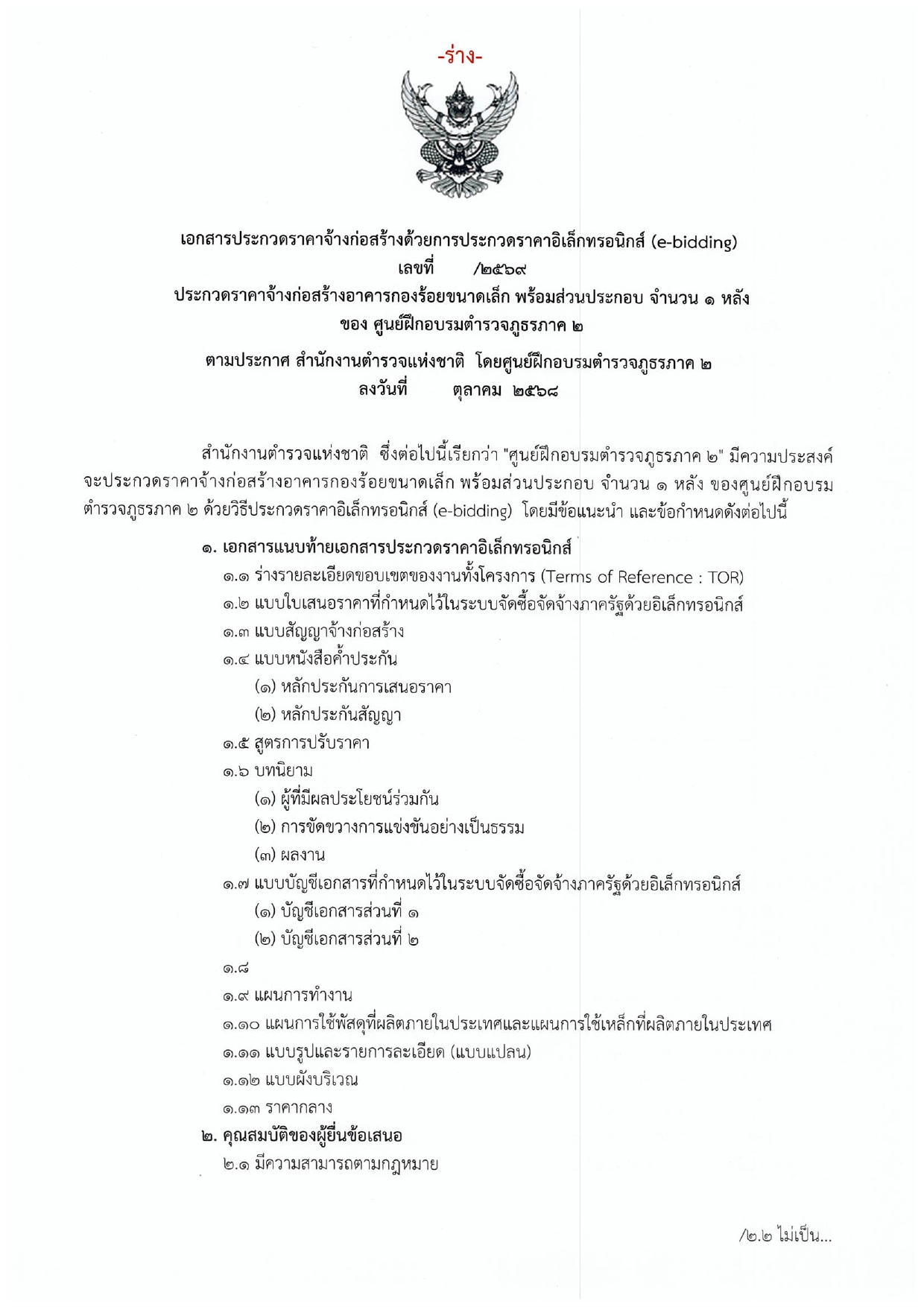 (ร่าง) เอกสารประกวดราคาจ้างสร้างด้วยการประกวดราคาอิเล็กทรอนิกส์ (ประกวดราคาจ้างก่อสร้างอาคารกองร้อยขนาดเล็ก พร้อมส่วนประกอบ จำนวน 1 หลัง